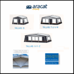 El avancé, se suministra completo de Telas de techo + Laterales + Frontales + Estructura metálica de acero galvanizado diámetro 25 mm, así como también: Faldón bajo caravana, juego de cortinas, piezas enganche caravana, estacas y piquetas.