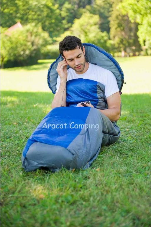 Este atractivo saco tiene exterior de diamante, que evita los desgarros en tus marchas y una capucha ajustable.