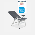 Un sillón reclinable muy lujoso y extra espacioso. Esta silla es ideal para personas grandes debido al asiento extra ancho. Ofrece la máxima comodidad gracias al respaldo ajustable en 7 posiciones y al tejido acolchado. El cómodo relleno de esta tela tiene una estructura de celda abierta para que no se retenga la humedad. Además, tanto el respaldo como los reposabrazos tienen forma ergonómica. La silla tiene un marco en H para mayor estabilidad. Cuando está plegada, esta silla es muy compacta y, por lo tanto, fácil de transportar.