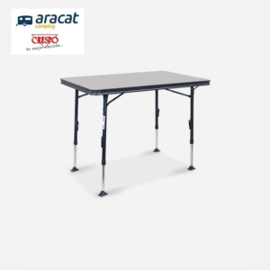 Mesa ligera de alta calidad y gran diseño, muy ligera y estable, así como un plegado superplano en 4 cm. Fabricada con aluminio reforzado y tablero HPL (laminado alta presión) resistente a altas temperaturas y humedad, asi como a arañazos. Patas telescópicas graduables independientemente (59-76 cm) que se abaten para un fácil transporte. Esta mesa tiene conteras estabilizadoras autonivelables, que le confiere una gran estabilidad en cualquier superficie.