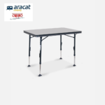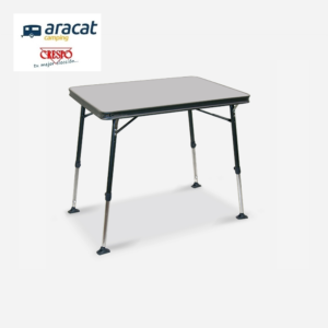 Mesa ligera de alta calidad y gran diseño, muy ligera y estable, así como un plegado superplano en 4 cm. Fabricada con aluminio reforzado y tablero HPL (laminado alta presión) resistente a altas temperaturas y humedad, así como a arañazos. Patas telescópicas graduables independientemente (59-76 cm) que se abaten para un fácil transporte. Esta mesa tiene conteras estabilizadoras autonivelantes, que le confiere una gran estabilidad en cualquier superficie.